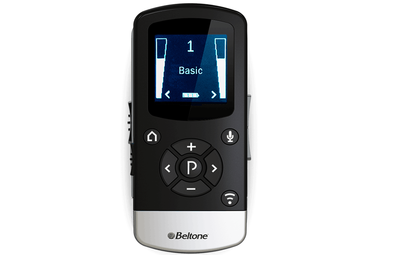 The intuitive Beltone Remote Control 2 makes hearing simple. You can adjust the volume in one or both hearing aids, change programs, or easily switch between sound streamed from your TV, radio, myPAL or PC. You can even adjust the balance between the sounds around you and the streaming audio to make sure you hear everything you want. And the large LCD display shows your programs, volume and battery level at a glance.